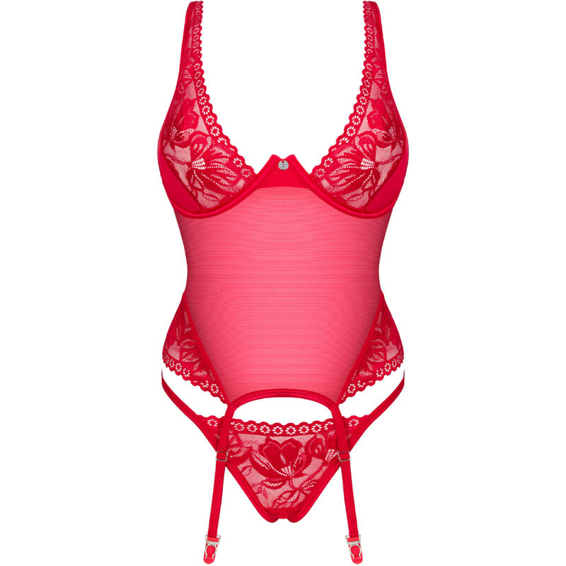 Quer aumentar a temperatura no quarto? O espartilho e tanga Lacelove é a escolha perfeita. Este conjunto sensual em uma cor vermelha intensa acentuará perfeitamente sua figura, e as inserções de renda atrairão muitos looks quentes. Prepare-se para elogios!