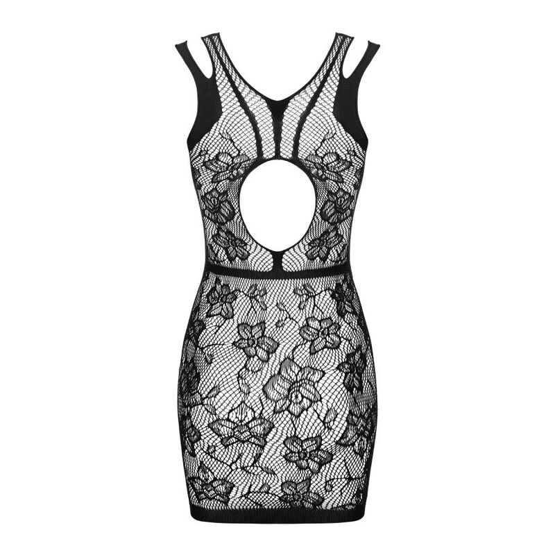 Este vestido com estampa floral e geométrica definitivamente atrai os olhares curiosos. Comprimento mini, abertura nas costas e ombros acentuados